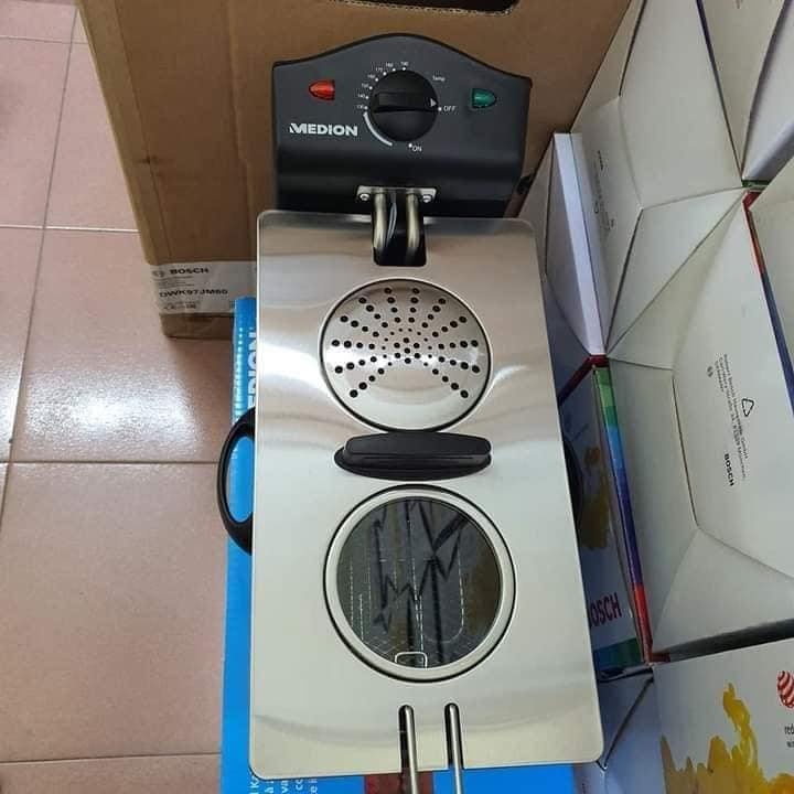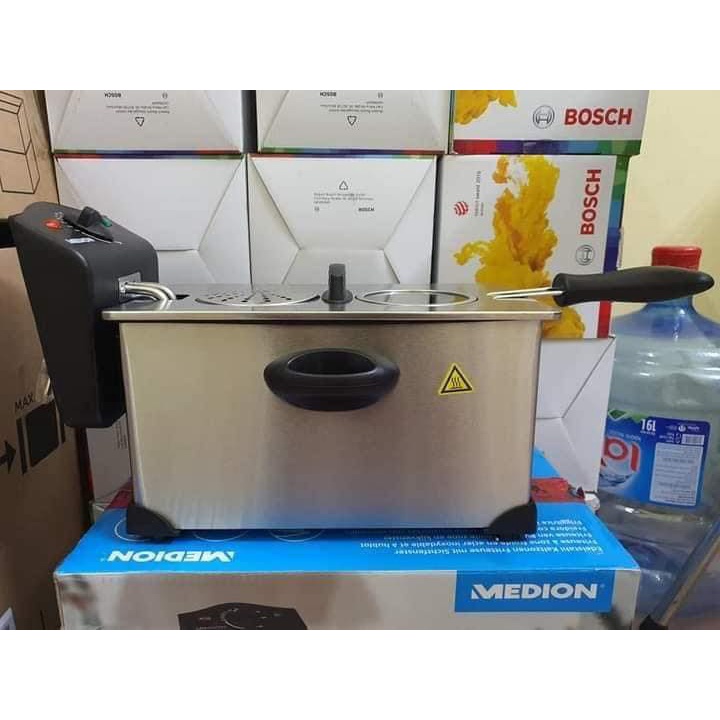 Nồi chiên ngập dầu Medion MD18084 (dung tích 3L)Nồi chiên ngập dầu Medion MD18084, 3 lít là sản phẩm tiện dụng cần thiết cho mỗi gia đình, nấu ăn thuận tiện, không lo dầu mỡ bắn, không lo nóng bức mùa hè, tiết kiệm thời gian mùa đông. Nồi chiên ngập dầu Medion MD18084 được sử dụng phổ biến trong nhà bếp của các nhà hàng và nhiều gia đình dùng chiên, rán những món ăn ngập dầu như khoai tây chiên, đùi/ cánh gà chiên, cá viên chiên hay thịt viên chiên giúp đồ ăn giòn tan, màu đẹp không cần lật dở mà hương vị đậm đà.