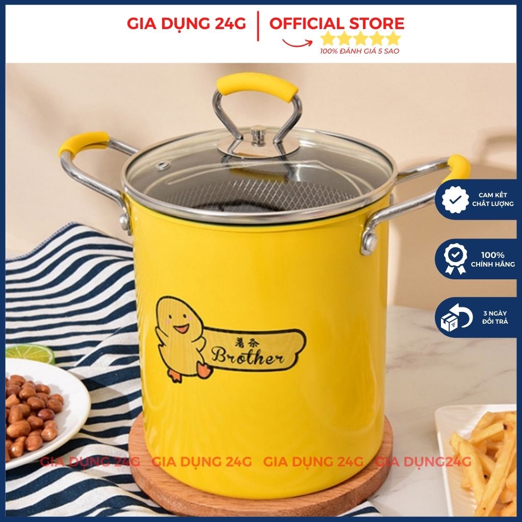 Nồi Chiên Ngập Dầu Mini Con Vịt Vàng Siêu Dễ Thương, Cao 18cm, Kèm Rổ Lọc DầuGia Dụng 24G Xin Kính Chào Quý Khách
