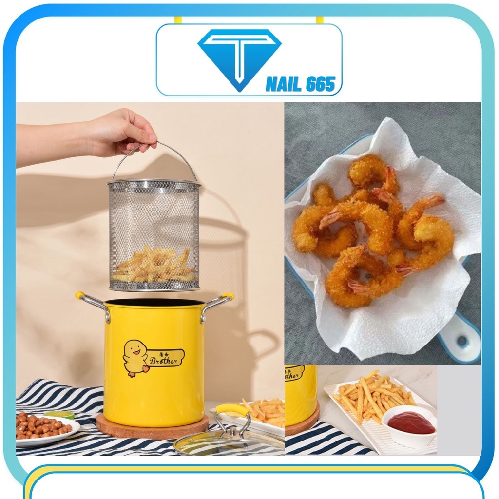 Nồi chiên ngập dầu mini ,không kén bếp , Đồ gia dụng Nồi chiên sâu lòng chống dính Brother có lưới lọc