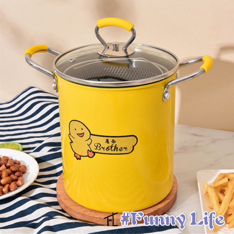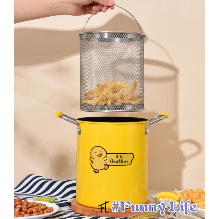 Nồi chiên ngập dầu mini, Nồi chiên sâu lòng chống dính có lưới lọc* Phù hợp với mọi loại bếp, ga, điện, từ