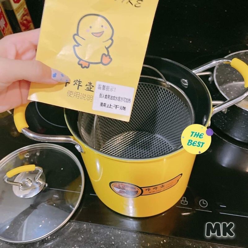 Nồi chiên ngập dầu mini siêu tiết kiệm hình vịt vàng có chống dính phù hợp với các bếp ga ,điện, từ