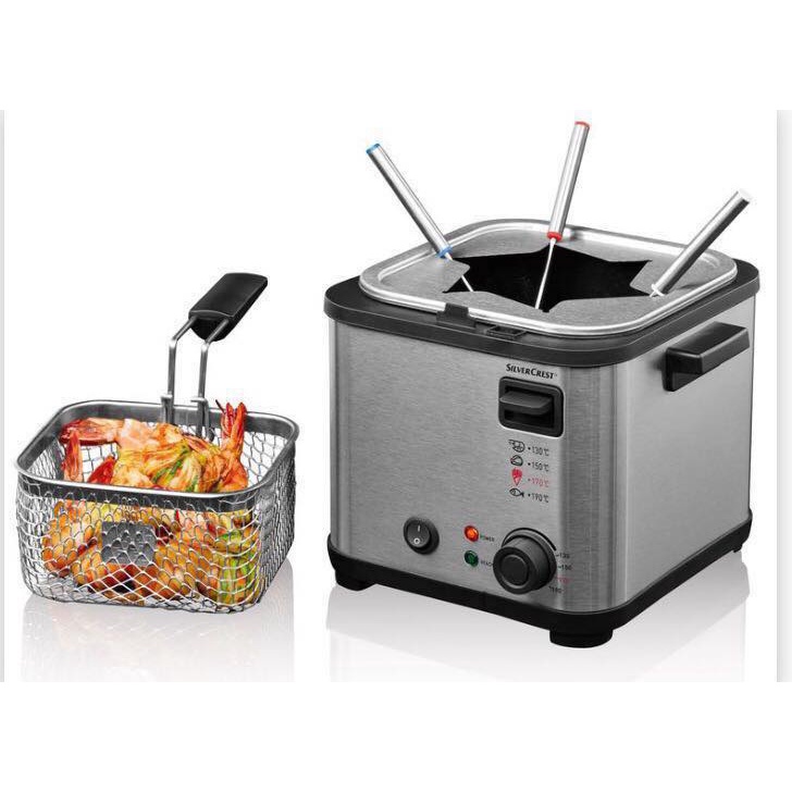 - Với chức năng 2 trong 1 ngay trong một nồi chiên mini là chiên ngập dầu và làm lẩu phô mai, bạn có thể biến hóa cho bữa ăn mình thật đa dạng và đầy màu sắc. Với dung tích nhỏ gọn nồi chiên ngập dầu mini SilverCrest làm căn bếp của bạn thật ngăn nắp và dễ dàng lau dọn sau khi nấu ăn.
