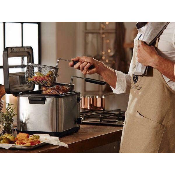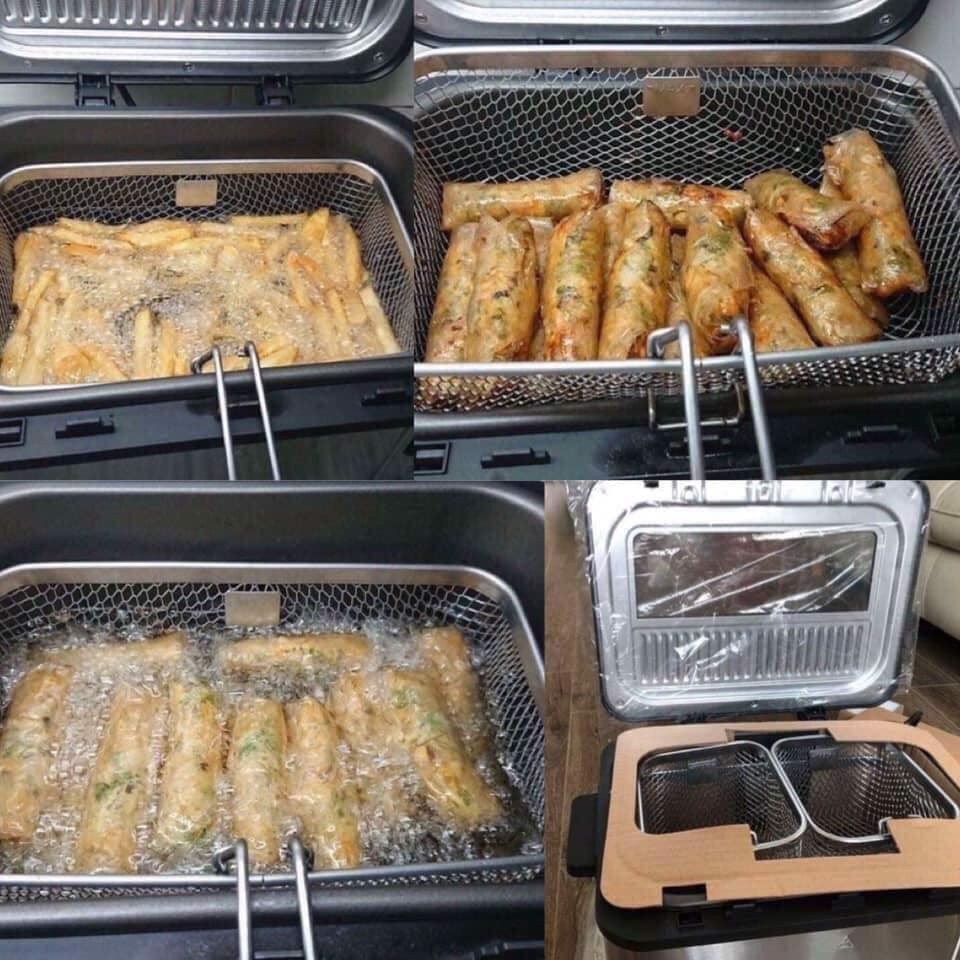 - Nồi này có 3 rổ chiên có thể thoải mái lựa chọn phù hợp với nhu cầu sử dụng: 2 rổ chiên nhỏ dung tích 450g và 1 rổ chiên lớn dung tích 900g.