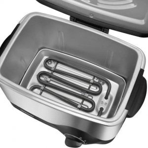 Đèn báo chức năng cho biết thiết bị nhỏ gọn đang hoạt động. Sự kết hợp giữa các yếu tố nhựa đen và thép không gỉ được đánh bóng mờ cũng làm cho DEEP FRYER Compact trở thành một yếu tố làm hài lòng thị giác. Có bốn mức nhiệt độ để lựa chọn - 130, 150, 170 hoặc 190 ° C, có thể dễ dàng cài đặt thông qua điều khiển xoay.