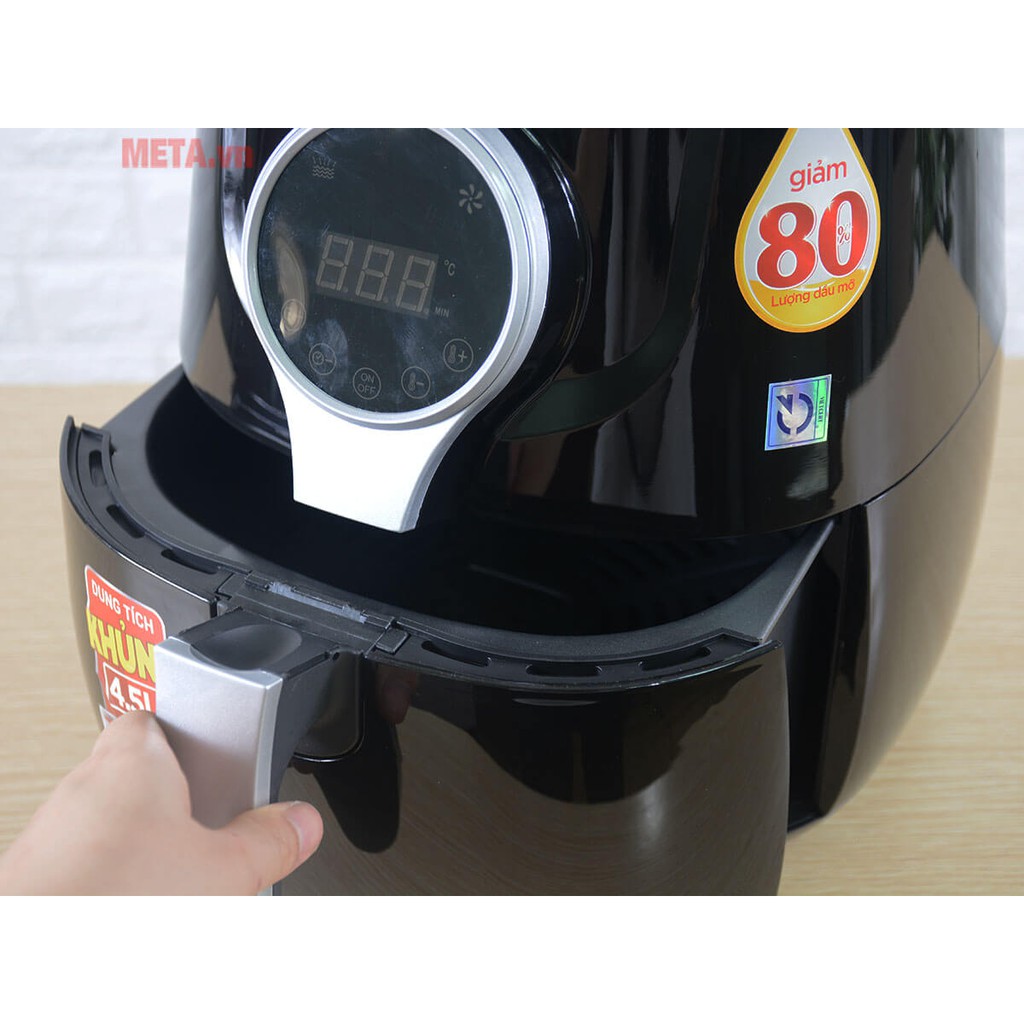 Máy có dung tích lên tới 4.5 lít nên bạn có thể chiên nhiều thực phẩm cũng lúc, giúp bạn tiết kiệm thời gian.