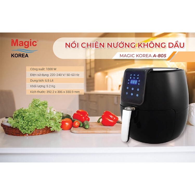 Thiết Bị Điện Gia Dụng > Đồ gia dụng nhà bếp > Nồi chiên không dầu || Nồi Chiên Nướng Không Dầu Magic Korea A805 6.5LCòn hàng