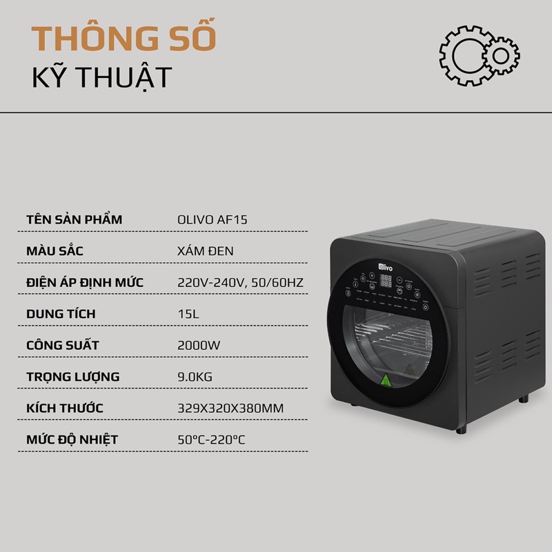 Giới thiệu Nồi chiên Olivo AF15 - freeship toàn quốc - tặng quà khủng - đại lý chính hãng