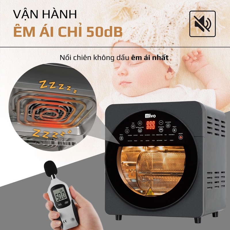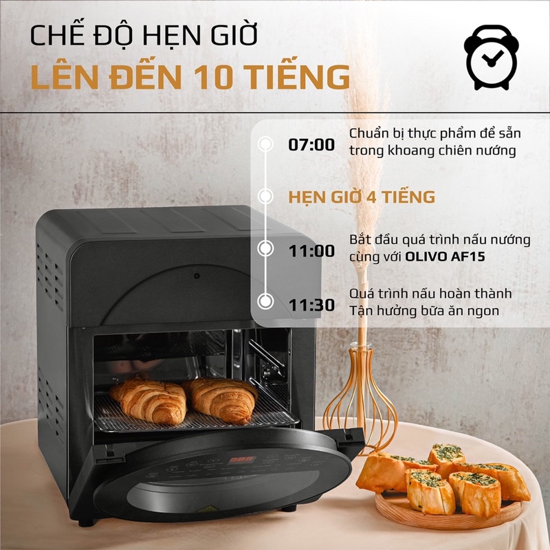 🔥Nồi chiên không dầu Olivo AF15 – Chân ái của mọi chị em nội trợ, giúp cho việc nấu nướng trở nên dễ dàng hơn bao giờ hết.👉 Dung tích cực "khủng" - 15 lít có thể nướng gà nguyên con, nhưng thiết kế bên ngoài của Olivo AF15 trông cực kỳ nhỏ gọn, sang trọng phù hợp với không gian bếp hiện đại.