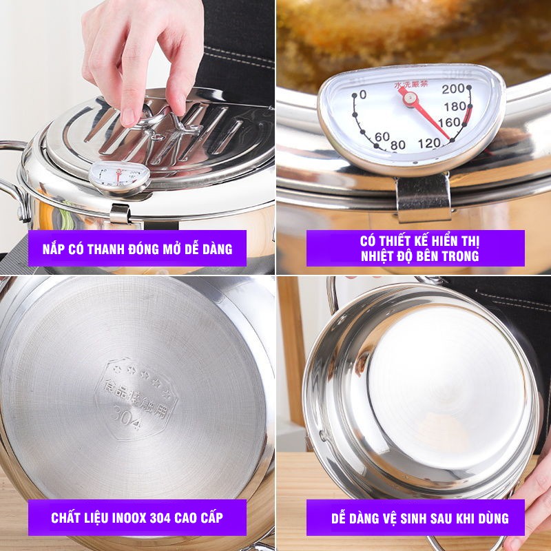 Nồi Chiên Rán Đa Năng Có Nhiệt Kế Và Nắp Lọc Dầu Chuyên Nghiệp