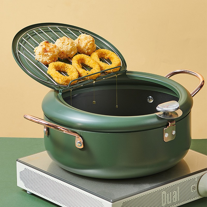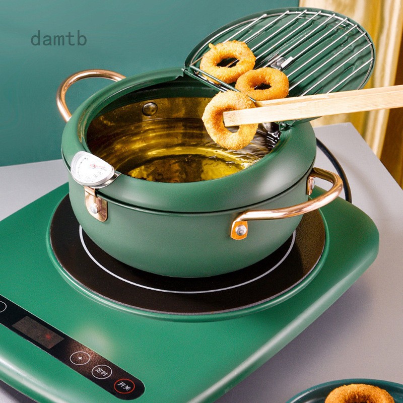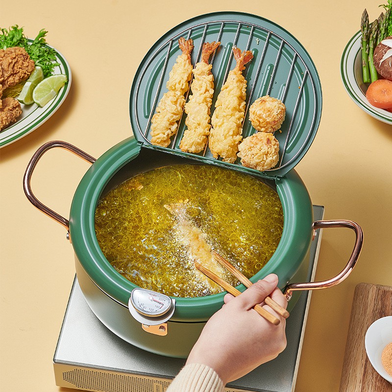 Nồi Chiên Sâu chống dính Tempura Nhật Bản, Có Nắp Đậy Nhiệt Kế, Lọc Dầu