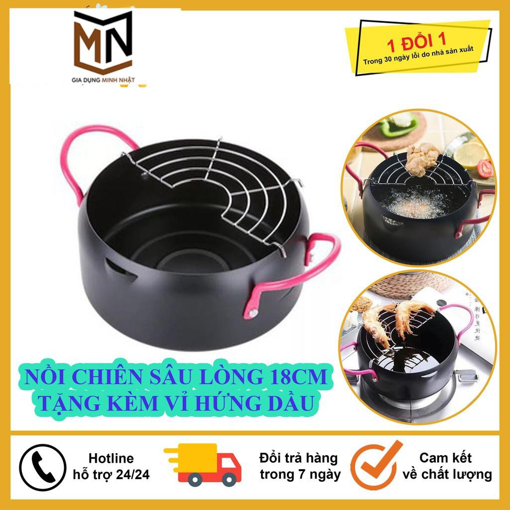 Nhà cửa & Đời sống > Dụng cụ nhà bếp > Nồi || Nồi Chiên Sâu Lòng Tặng Kèm Khay Lưới Hứng Dáo Dầu Đồ Ăn Size 18Cm, Siêu Tiện DụngCòn hàng