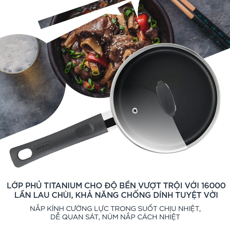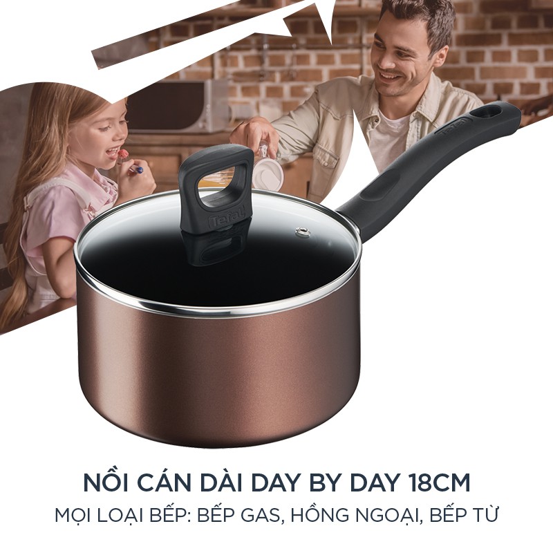 Nồi chống dính cán dài, bếp từ , bếp gas, bếp hồng ngoại Tefal 18cm - Day By Day - Thương hiệu Pháp