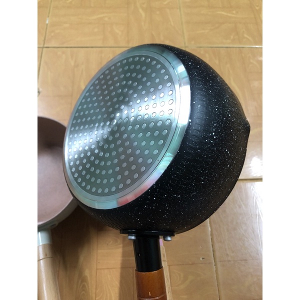Nồi chống dính có cầm tay gỗChất liệu: nhôm dày phủ lớp chống dính vân đá dày
