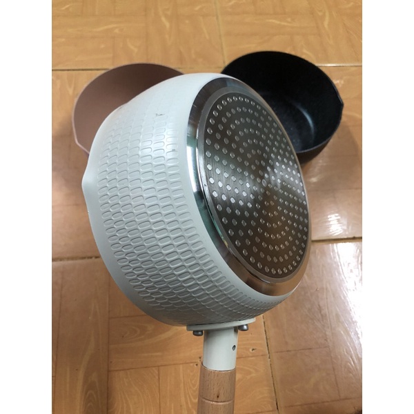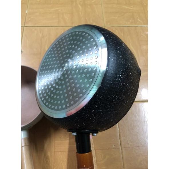 Nồi chống dính có cầm tay gỗChất liệu: nhôm dày phủ lớp chống dính vân đá dày