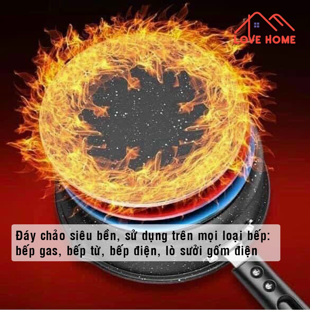- Chảo vân đá chống dính cấu tạo từ nhôm cao cấp không rỉ giúp toả nhiệt đều và nóng nhanh hơn