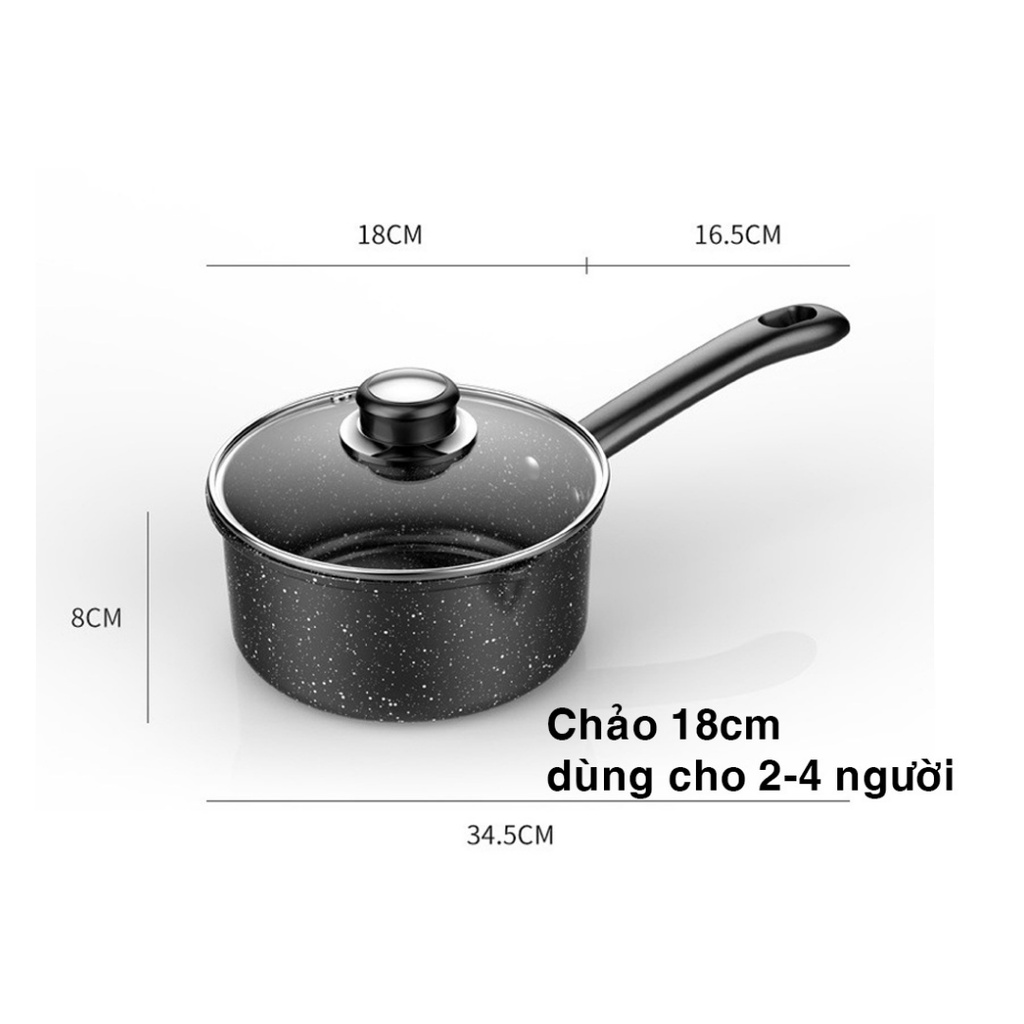 Nồi chống dính đáy bằng, quánh có tay cầm có thể tháo rời nấu trên nhiều loại bếp size 18cm (KHÔNG NẮP)