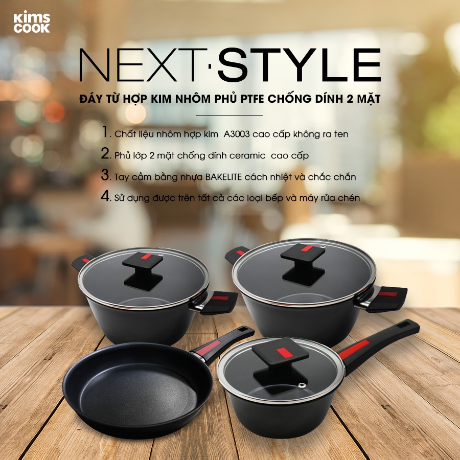 Nhà cửa & Đời sống > Dụng cụ nhà bếp > Nồi || Nồi chống dính đáy từ cao cấp Kimscook Next Style hợp kim nhôm phủ PTFE 2 mặt , hàng xuất khẩu Pháp , tay cầm cách nhiệtCòn hàng