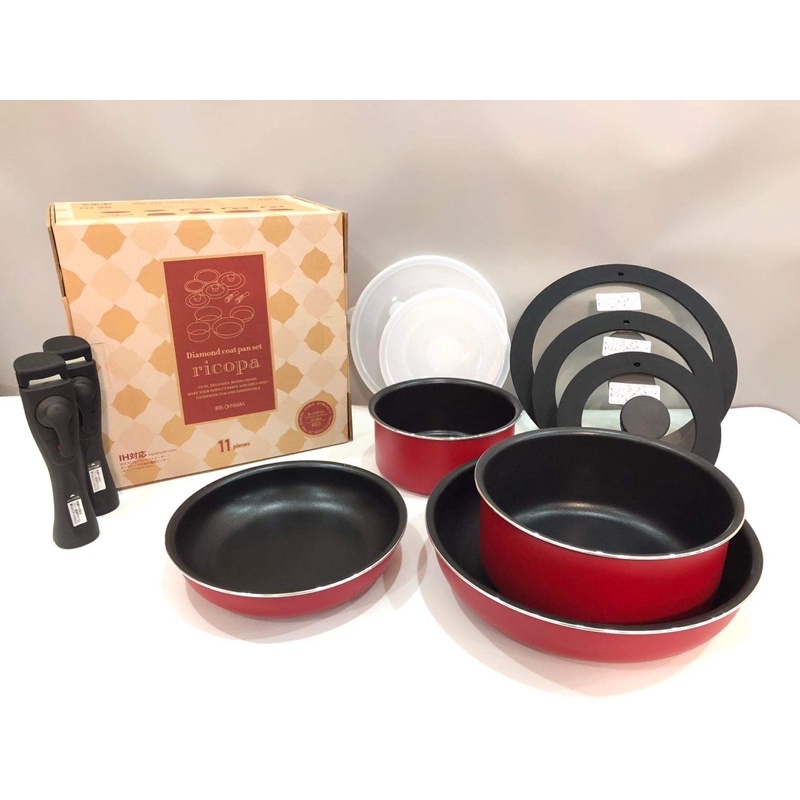 🌸 🌸 🌸 BỘ NỒI CHỐNG DÍNH IRIS OHYAMA RICOPA 11 MÓN NỘI ĐỊA NHẬT🥘 Màu sắc : Đỏ, Đen