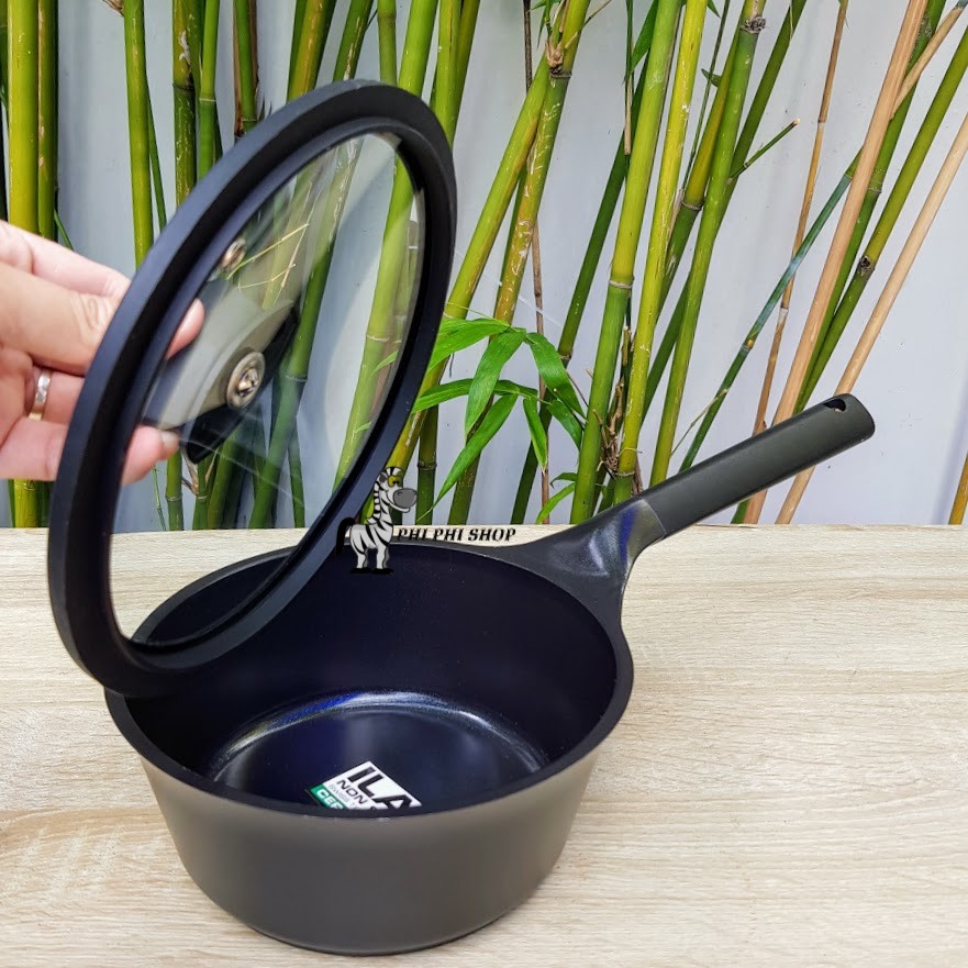 Nồi chống dính Lock&Lock 1 tay cầm 18cm EDGE sử dụng bếp từ CAS1811- Kích thước: đường kính nồi 18cm, cao 14cm, dài 40cm luôn cán