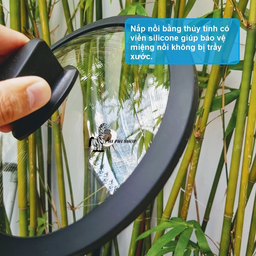 - Nắp thủy tinh với viền silicone chịu nhiệt