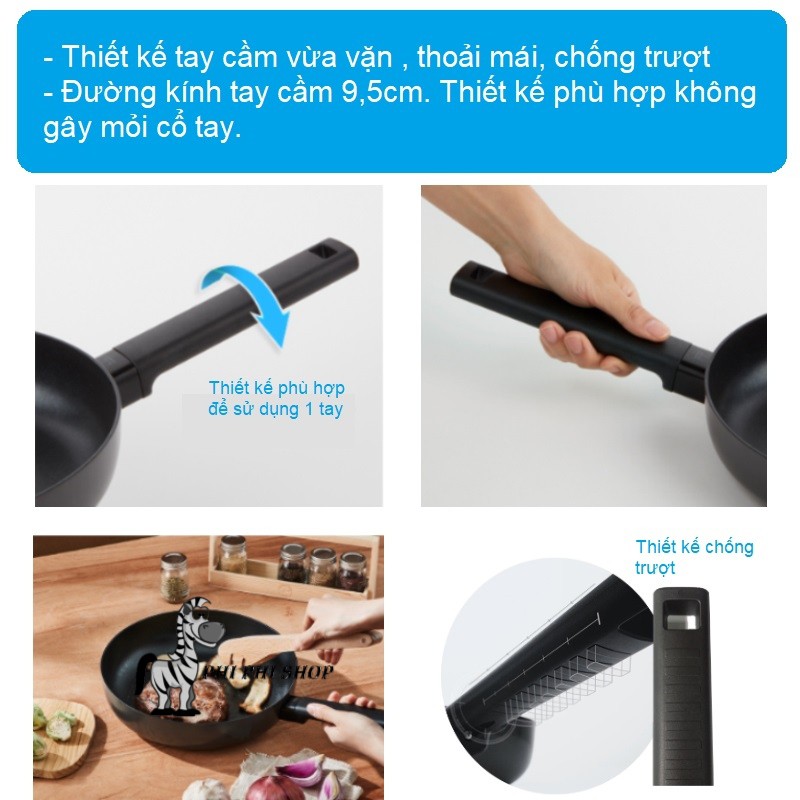 - Thiết kế tay cầm chống trượt, vừa vặn, giúp bạn sử dụng thoải mái, mang lại niềm vui khi nấu ăn tại nhà.