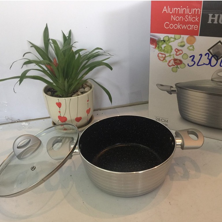 Nhà cửa & Đời sống > Dụng cụ nhà bếp > Nồi || Nồi chống dính màu xám nắp kiếng, sử dụng như nồi chiên có đủ size được thiết kế từ Đức.Còn hàng