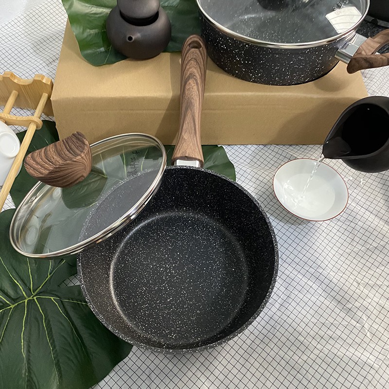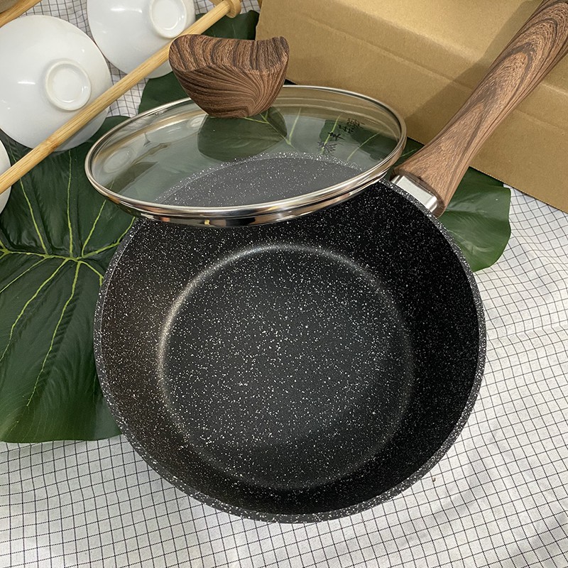 Nhà cửa & Đời sống > Dụng cụ nhà bếp > Nồi || Nồi Chống Dính - Nồi Quánh Vân Đá Đáy Từ Chống Dính Có Nắp Đậy Kính Cường Lực Tiện Lợi Chiên, Xào, Kho LNT vt124Còn hàng