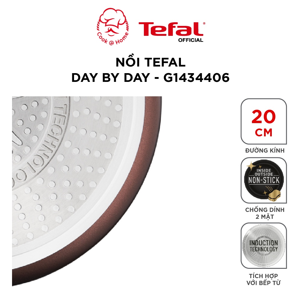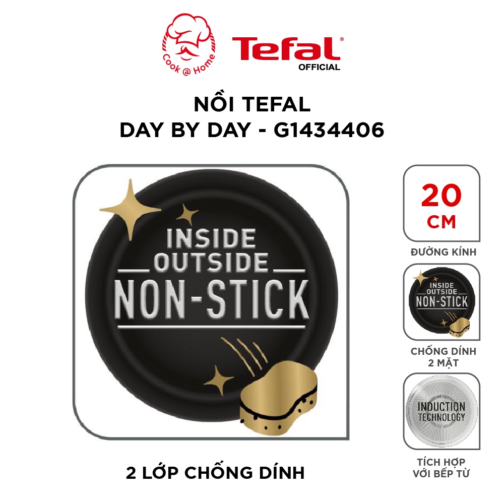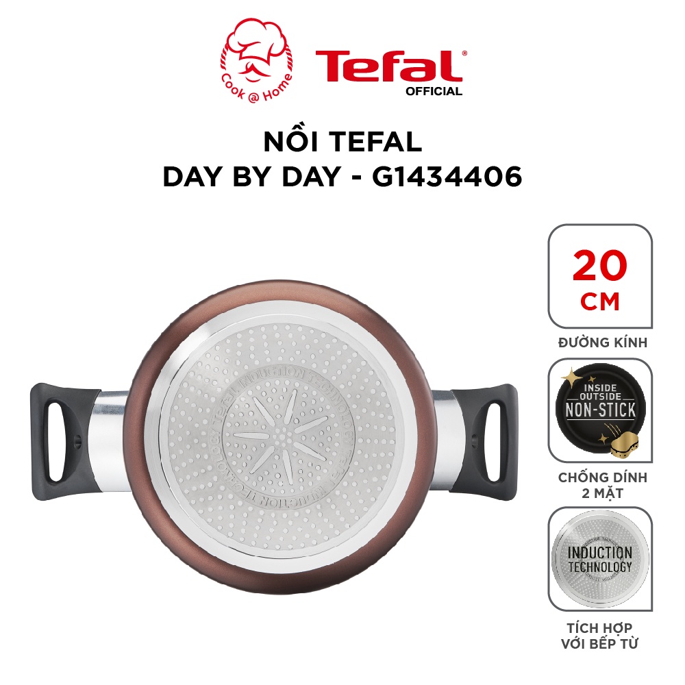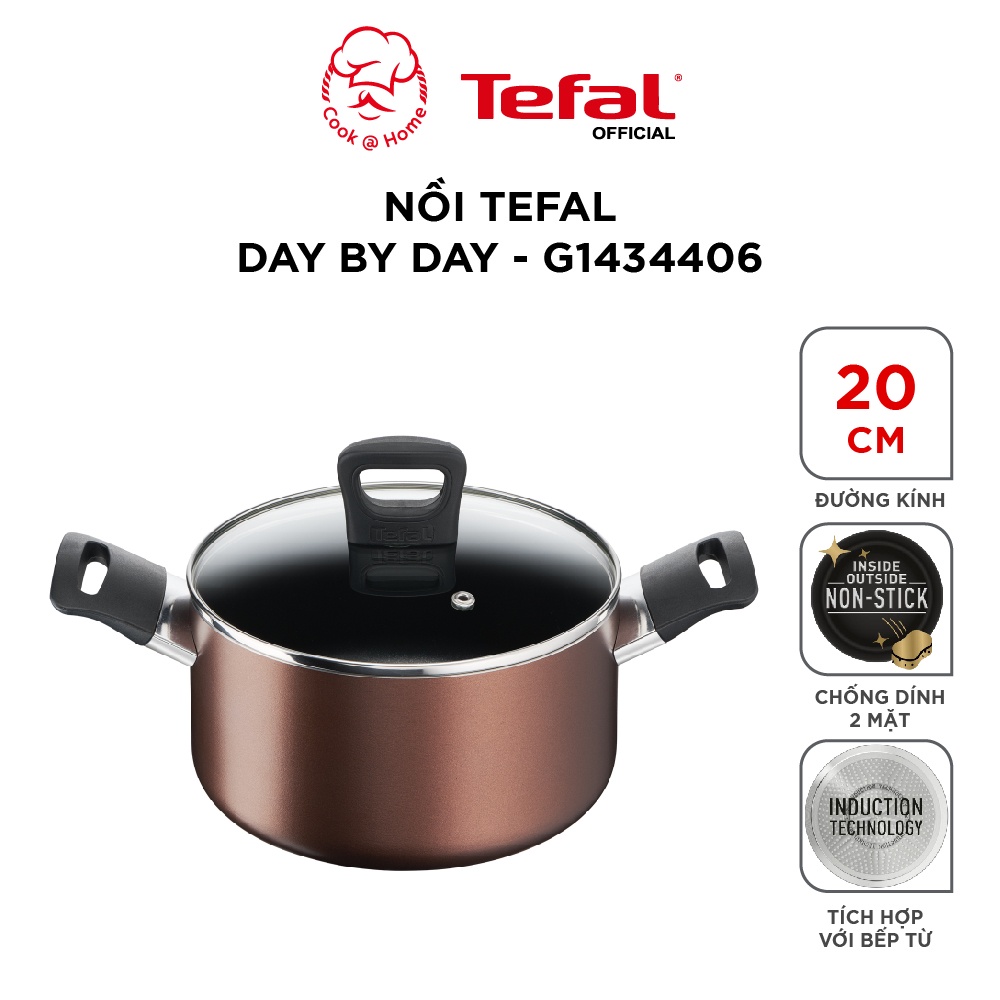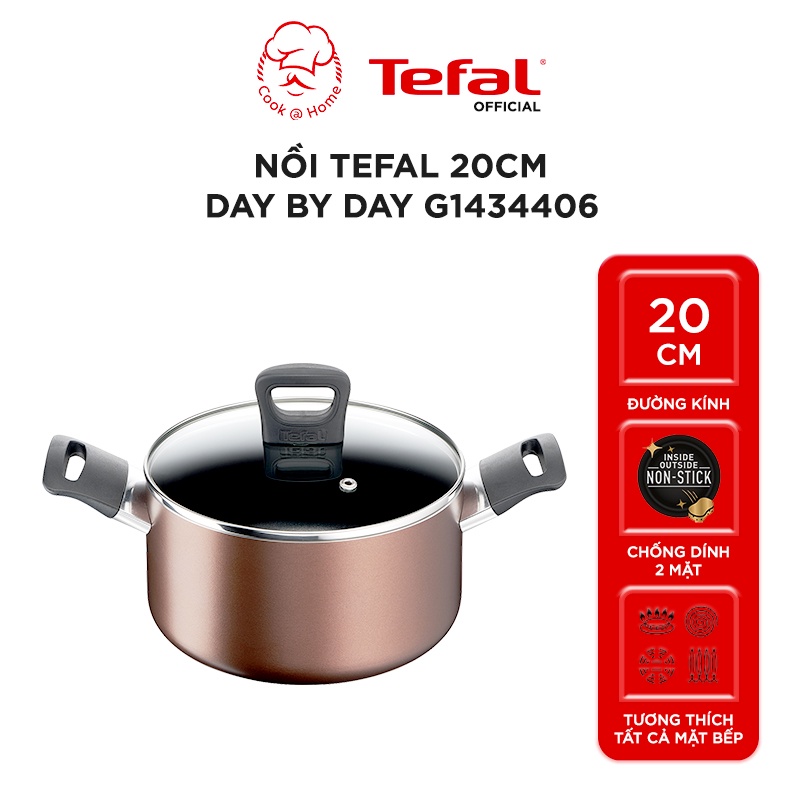 - Nồi chống dính Tefal Day By Day 20cm (G143440) dùng được trên mọi loại bếp: Tương thích với tất cả các mặt bếp, bao gồm cả bếp từ, hoàn thiện với tay cầm tiện dụng và các cạnh rót, để thuận tiện cho việc nấu nướng..