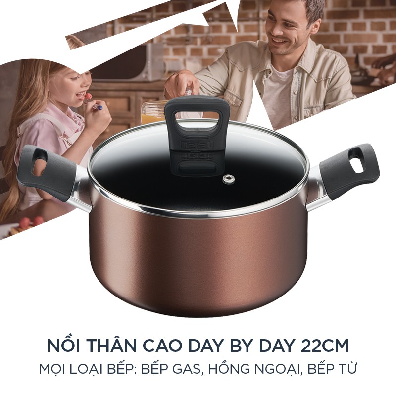 Nồi chống dính thân cao bếp từ, bếp gas, bếp hồng ngoại Tefal - Day by Day 22cm - Thương hiệu Pháp