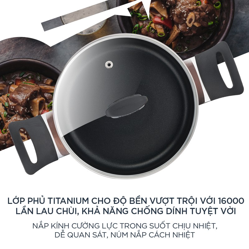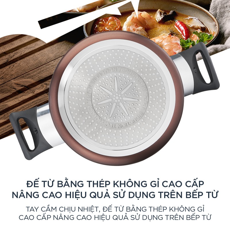 - Đường kính 22cm phù hợp với nồi canh cho gia đình 2-3 người.