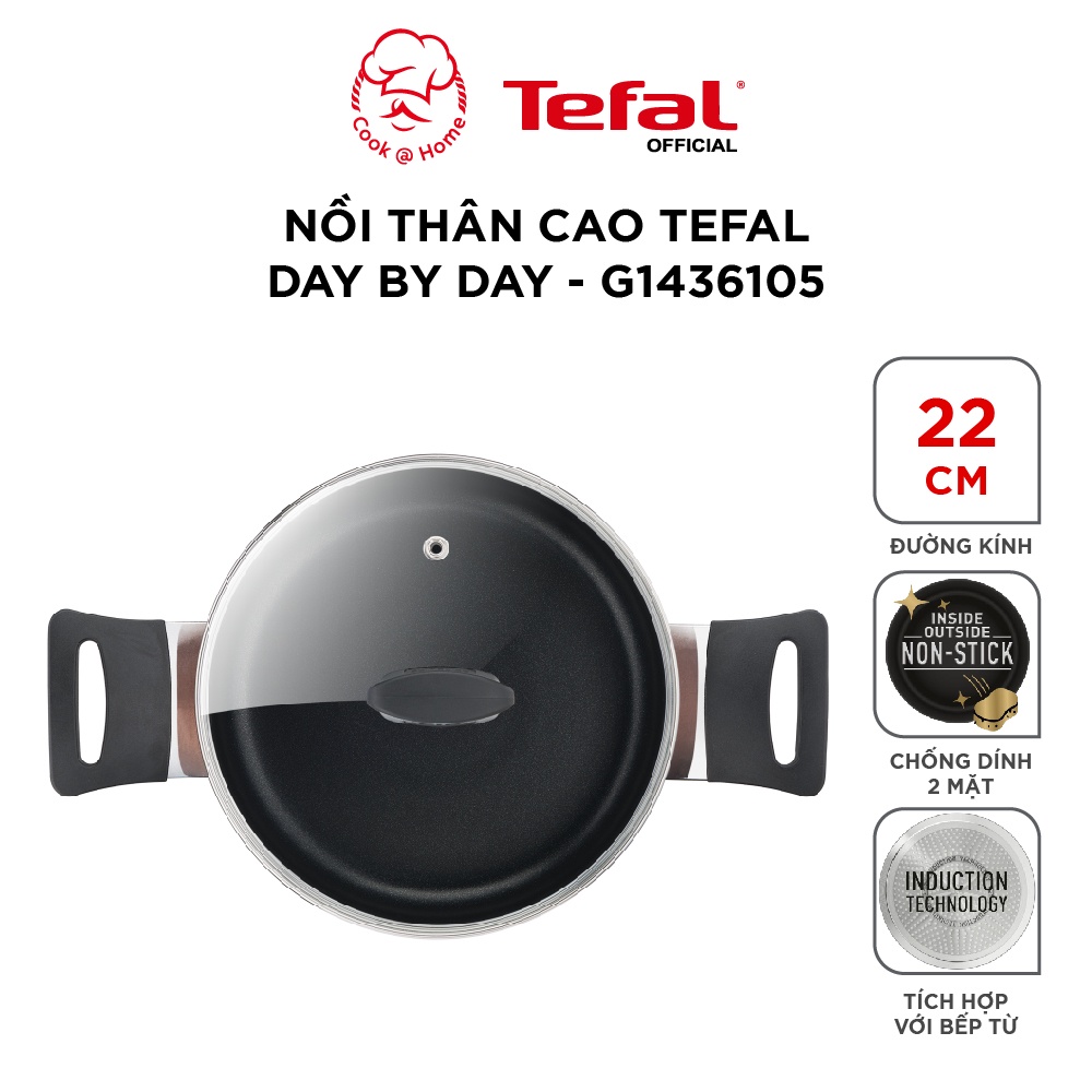Nồi chống dính thân cao Tefal Day By Day 22cm G1436105 với thiết kế sang trọng , hiện đại**Đặc điểm nổi bật: