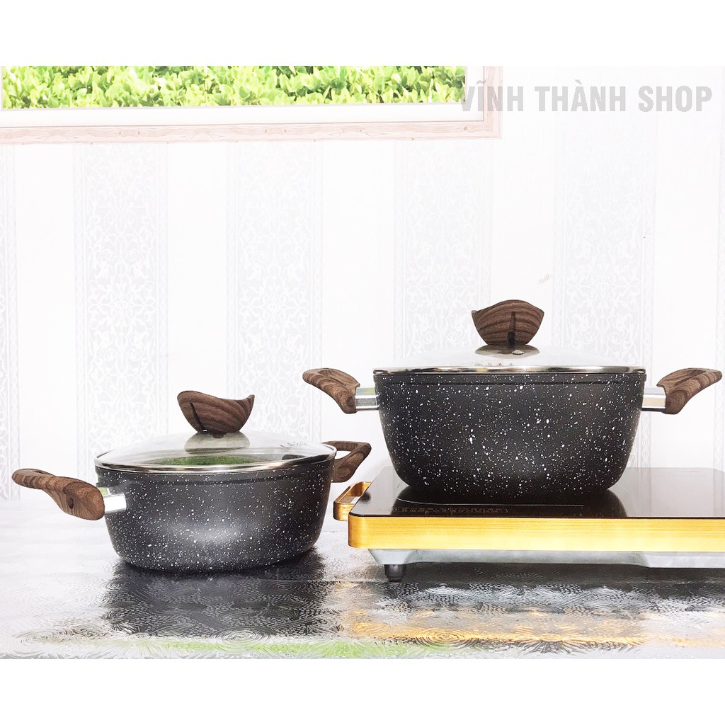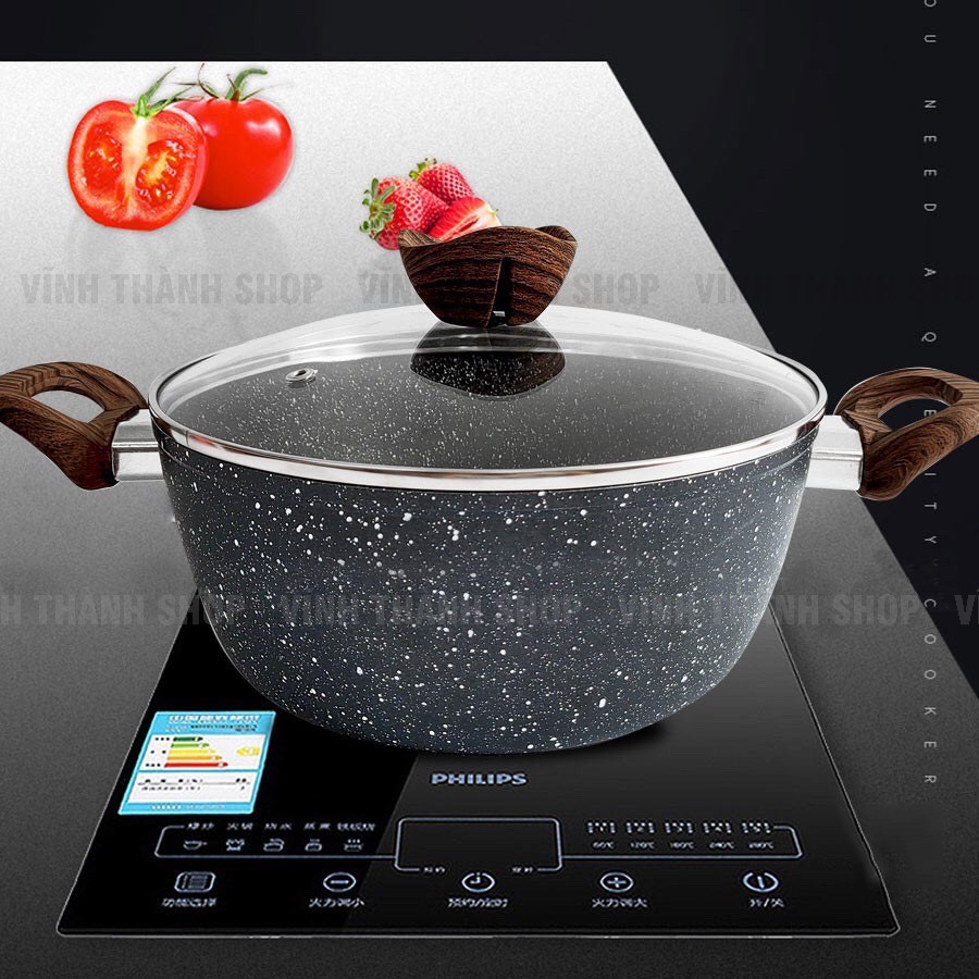 Nồi Chống Dính Vân Đá Đáy Từ Để Chiên, Xào, Nấu, Hấp Dùng Được Cho Bếp Từ, Bếp Gas, Bếp Hồng Ngoại Size 20cm - 24cm