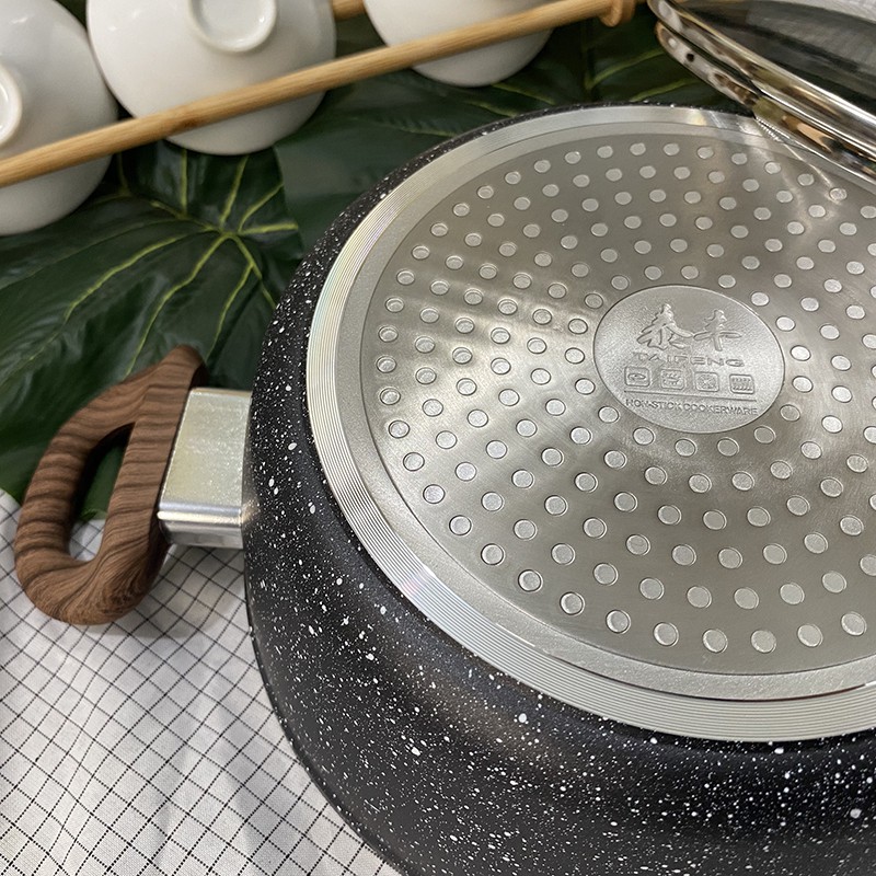 Giới thiệu Nồi Chống Dính Vân Đá Đáy Từ Để Chiên, Xào, Nấu, Hấp Dùng Được Cho Bếp Từ, Bếp Gas, Bếp Hồng Ngoại Size 20cm - 24cm