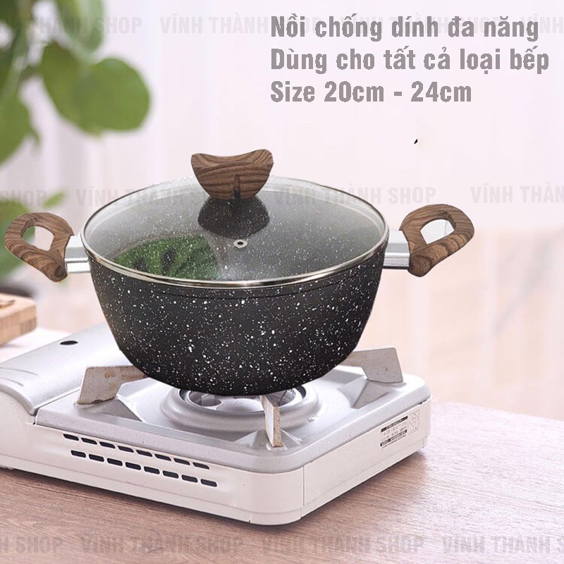 Nhà cửa & Đời sống > Dụng cụ nhà bếp > Nồi || Nồi Chống Dính Vân Đá Đáy Từ Để Chiên, Xào, Nấu, Hấp Dùng Được Cho Bếp Từ, Bếp Gas, Bếp Hồng Ngoại Size 20cm - 24cmCòn hàng