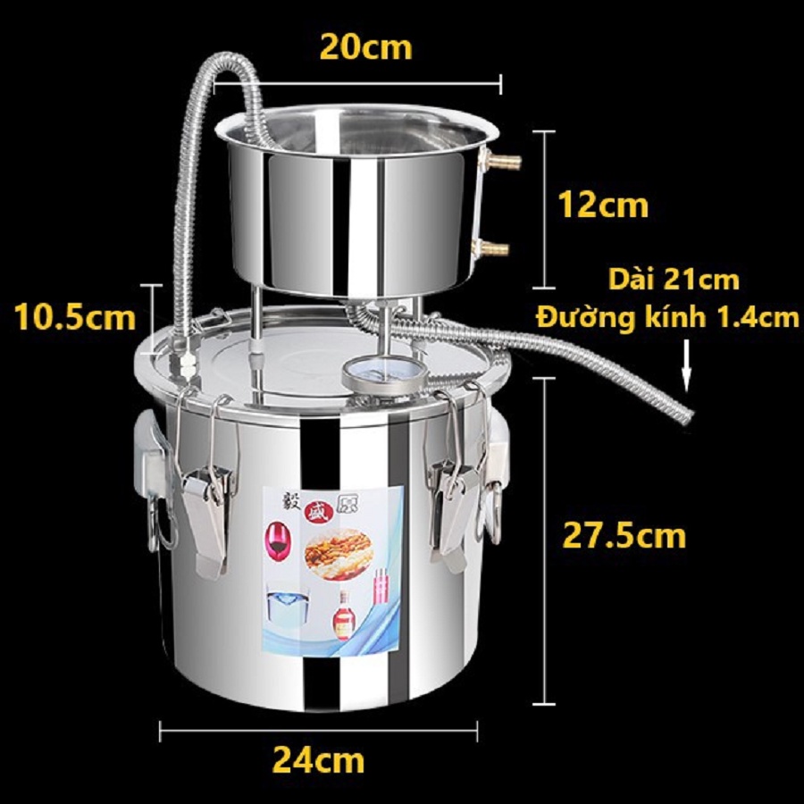 Nồi Chưng Cất INOX 304 Siêu Dày Đáy Nguyên Khối Đa Năng, Chưng Cất Tinh Dầu, Nước Hoa Hồng, ... 22 Lít