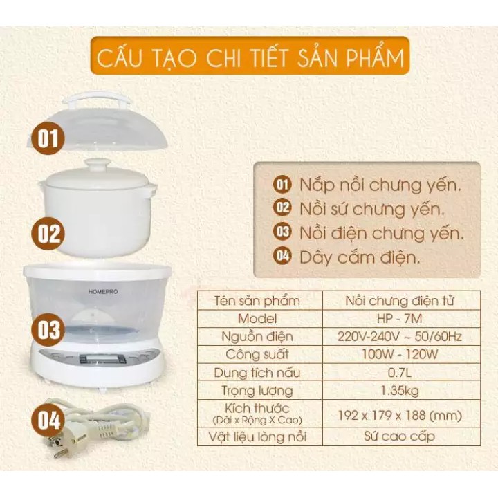 Giới thiệu Nồi chưng điện tử đa năng Homepro HP-7M 700ml (Hàng chính hãng) - Phụ kiện nồi chưng yến HP7M