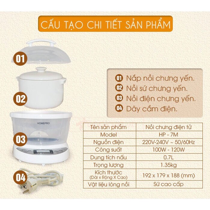 Nồi chưng yến đa năng Homepro HP-7M 700ml (Hàng chính hãng)