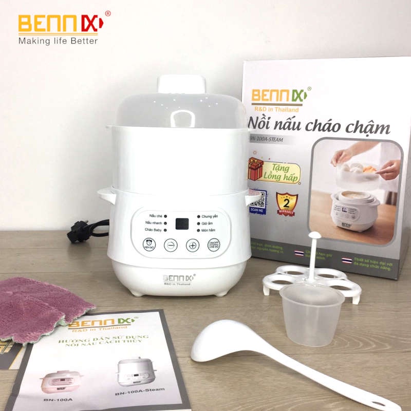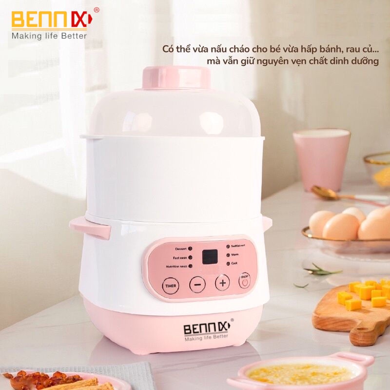 Thiết Bị Điện Gia Dụng > Đồ gia dụng nhà bếp > Nồi nấu chậm & Dụng cụ nấu chân không || Nồi chưng yến, hấp cách thủy, nấu cháo chậm Bennix công nghệ Thái Lan dung tích 1 lít loại kèm khay hấpCòn hàng