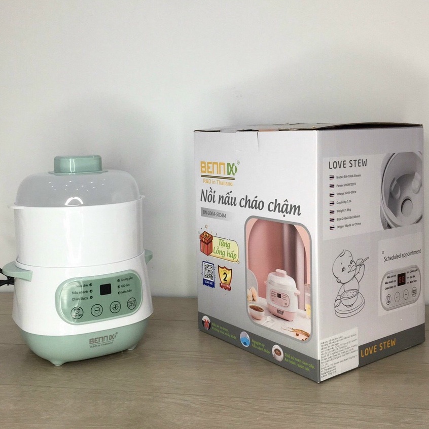 Nồi chưng yến, nấu cháo chậm Bennix BN100A Steam 1 lít Có xửng hấp