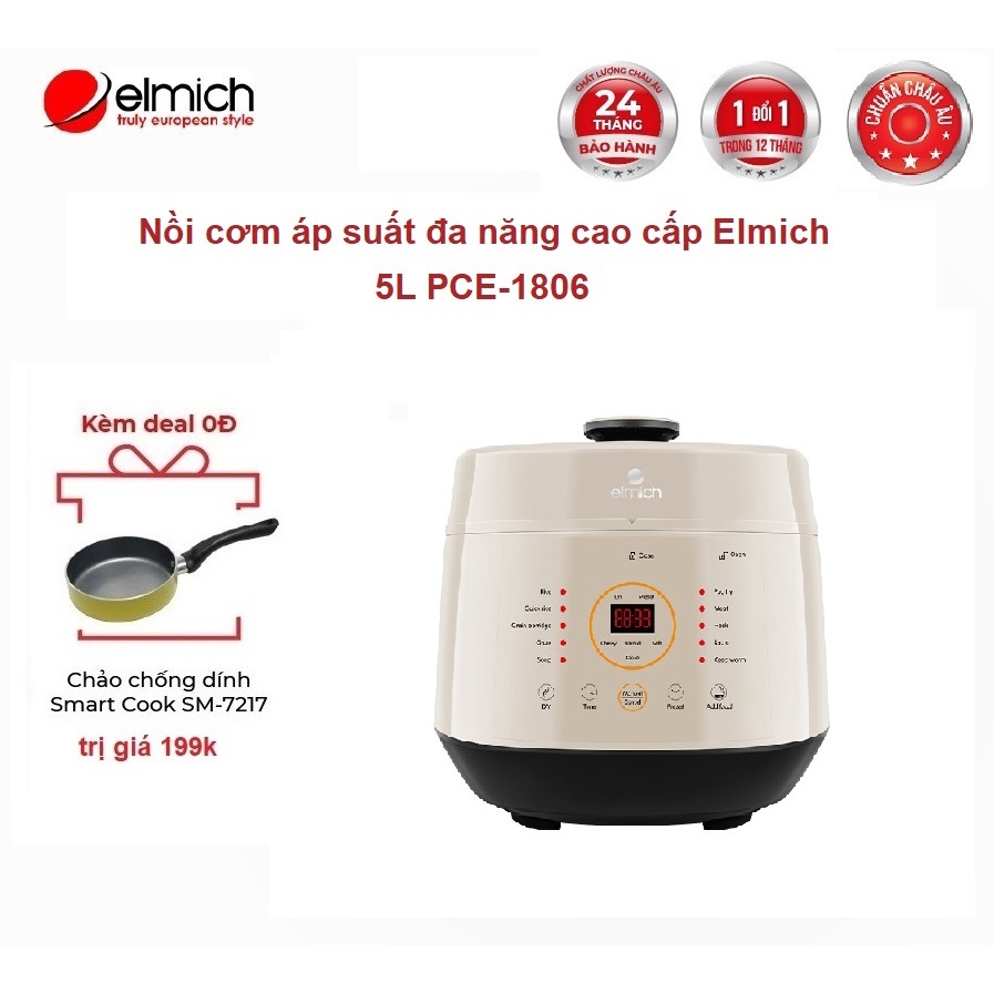 [Mã ELHADEV giảm 4% đơn 300K] Nồi cơm áp suất đa năng cao cấp 5L Elmich PCE-1806 ( Tặng thêm lòng nồi chống dính )