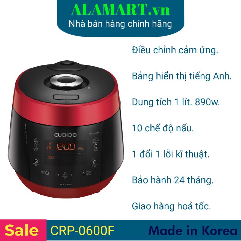 Thiết Bị Điện Gia Dụng > Đồ gia dụng nhà bếp > Nồi cơm điện || [Mã ELHASALE1TR giảm 5% đơn 3TR] Nồi cơm áp suất điện tử Cuckoo 1.08 lít CRP-PK0600FCòn hàng
