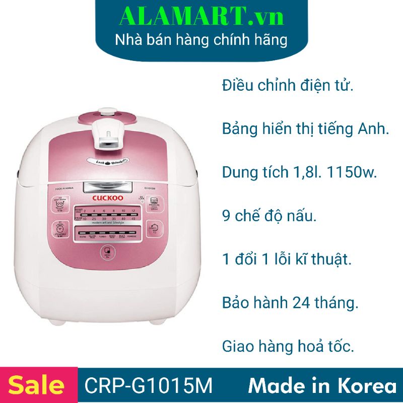 Nồi cơm Áp suất Điện tử CUCKOO CRP-G1015M 1.8L (MADE IN KOREA) dùng cho 4 - 8 người ăn 1 kg gạo