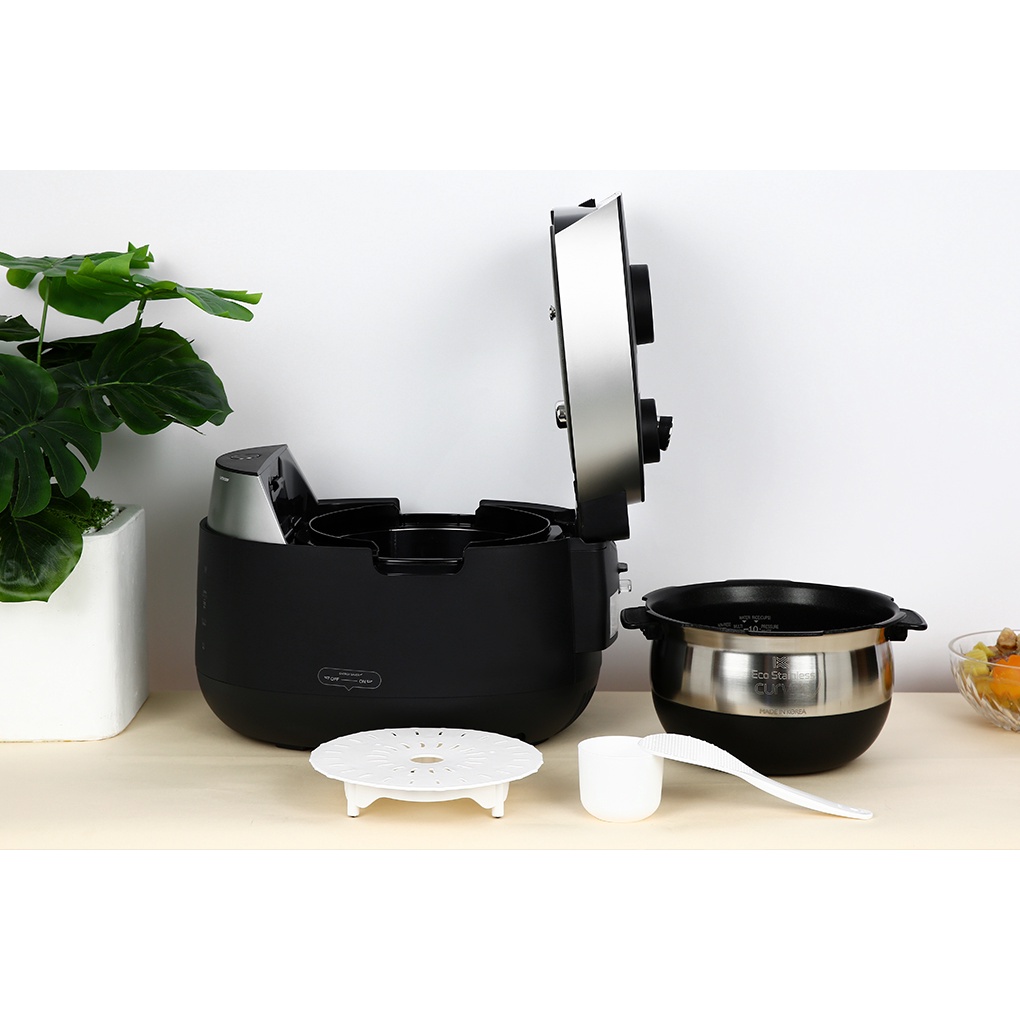 ●Nắp phụ tháo rời dễ dàng chỉ với 1 nút nhấn, làm bằng chất liệu thép không gỉ an toàn cho sức khỏe, dễ vệ sinh sau khi nấu