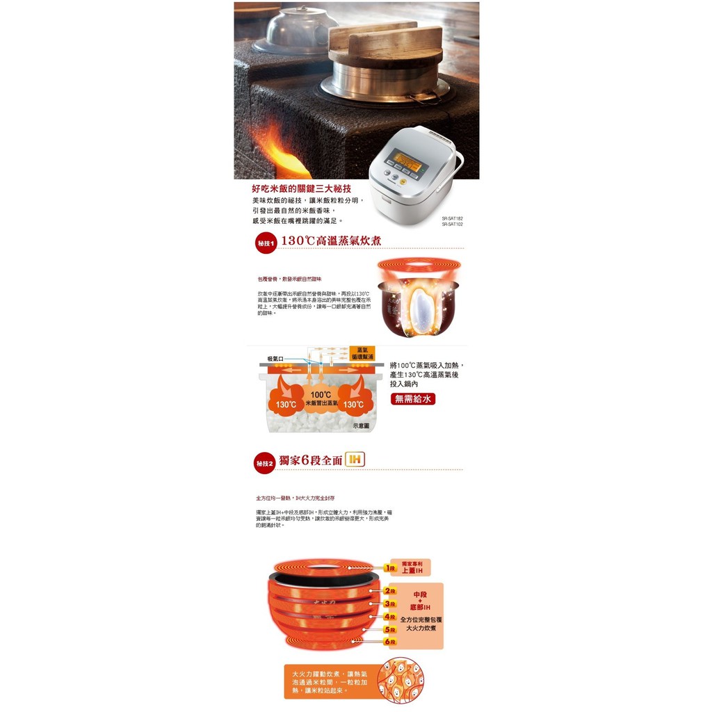 - Cơm được nấu bằng hơi nước ở nhiệt độ 130 độ C, giữ cho cơm ngon ngay cả khi đã nguội.
