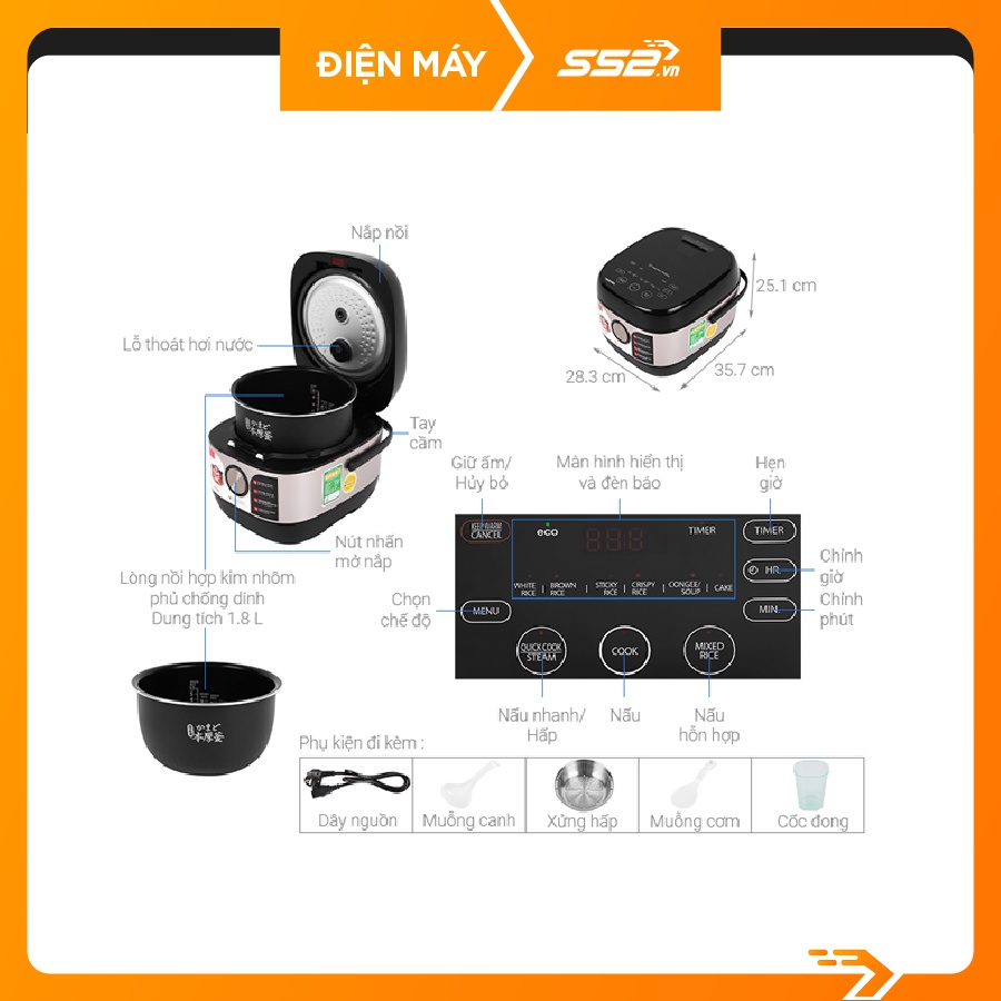 Dung tích:1.8 lít, Số người ăn 4 - 6 người