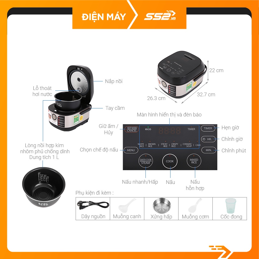 - Công suất: Nấu: 1000W; Giữ ấm: 20W
