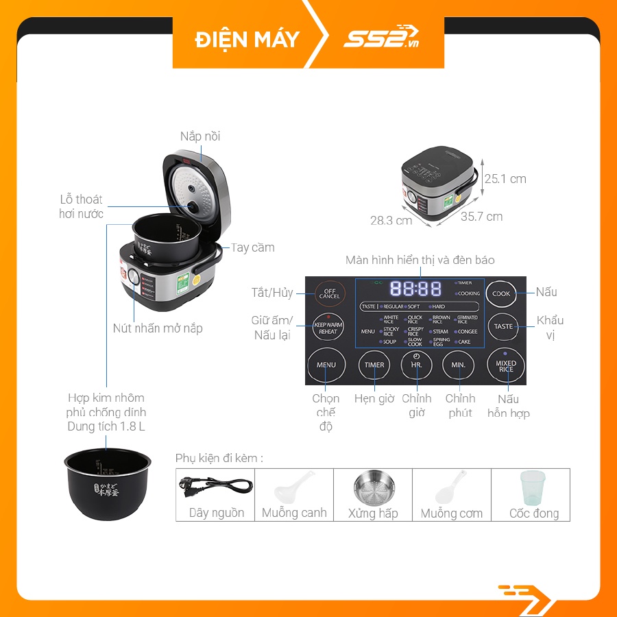 Tiện ích:Có xửng hấp Hẹn giờ nấu