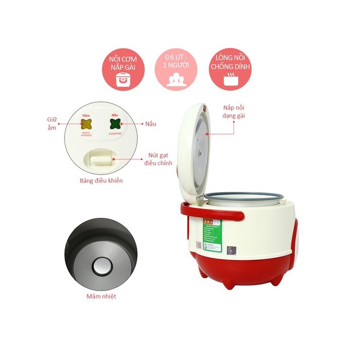 - Nồi cơm điện 0.6 lít Happycook HC 060 Sau khi cơm được nấu chín, nồi cơm điện Happy Cook HC 060 tự chuyển sang chế độ hâm.