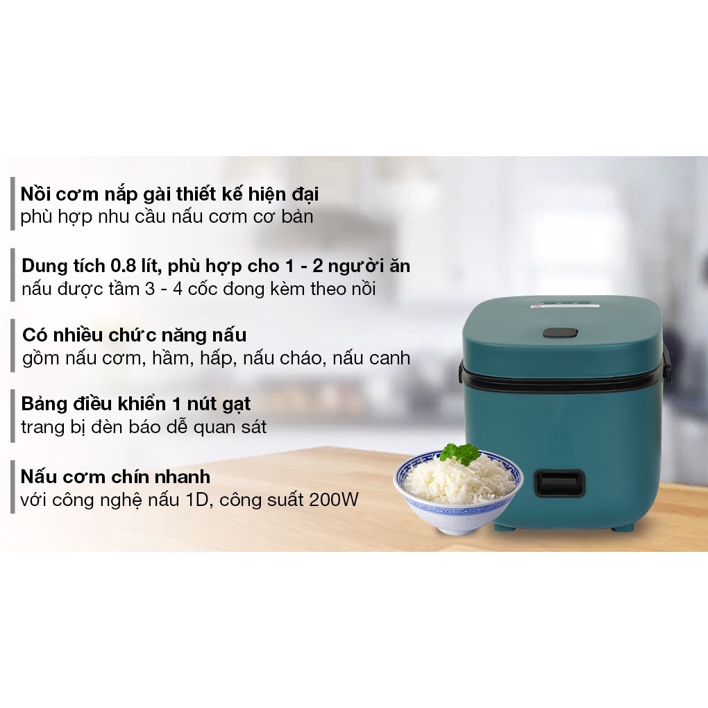 Thiết Bị Điện Gia Dụng > Đồ gia dụng nhà bếp > Nồi cơm điện || Nồi Cơm Điện 0.8L Mishio MK265 - Xanh Mint Bảo Hành 12 Tháng-Hàng Chính HãngCòn hàng