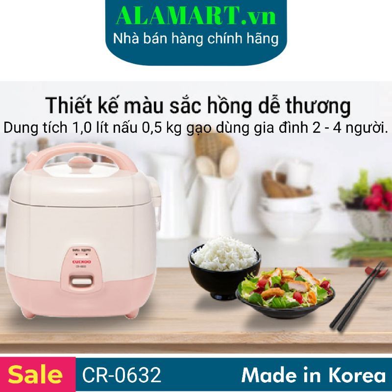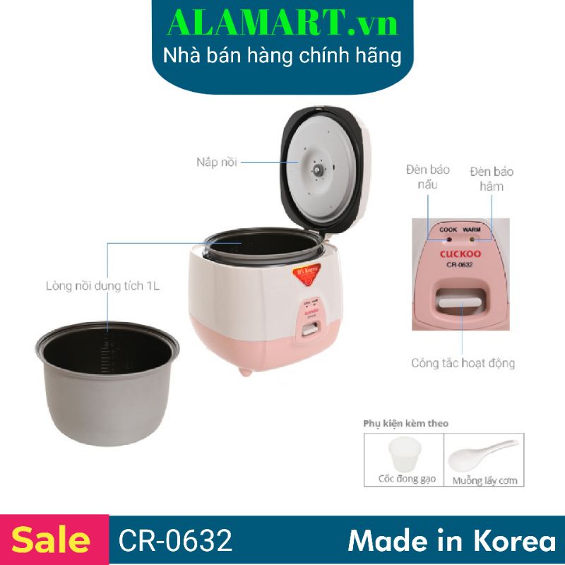 NỒI CƠM ĐIỆN 1,0 LÍT CUCKOO CR-0632 nhập khẩu Hàn Quốc dùng gia đình 2 - 4 người ăn nấu 0.5kg gạo